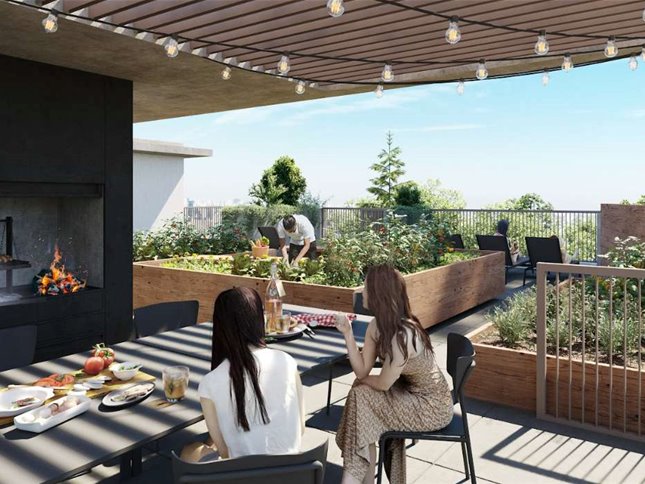 Cuenta con coworking, bike parking, jardines, parrilleros, coliving con terraza, huerta orgánica y wet spa con solárium.