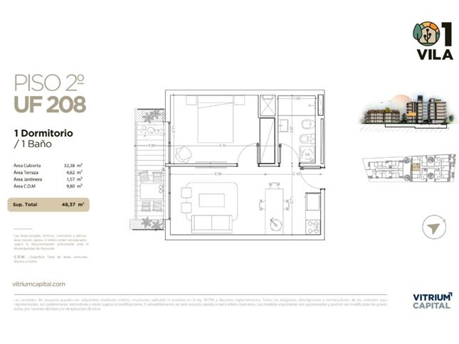 1 DORM1 BAÑO49 m² SUP.33 m² EDIF.1 Garaje