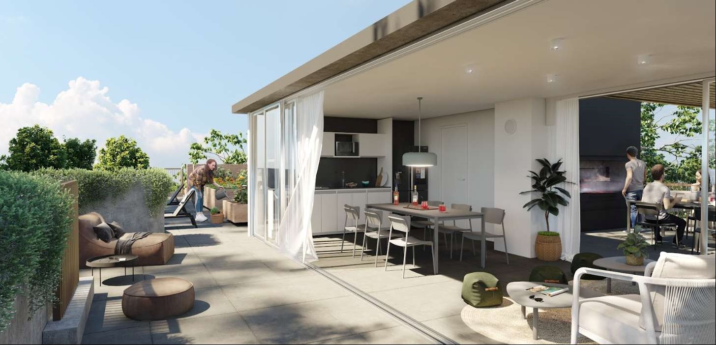 Cuenta con coworking, bike parking, jardines, parrilleros, coliving con terraza, huerta orgánica y wet spa con solárium.