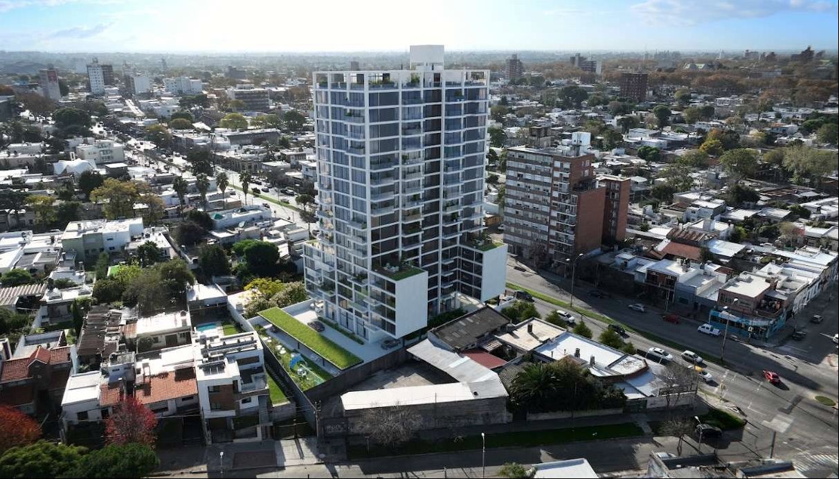 Ofrece monoambientes, 1 y 2 dormitorios, en una torre de 16 pisos, con garajes en planta baja y subsuelo.