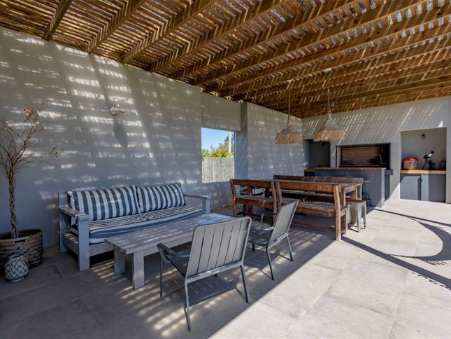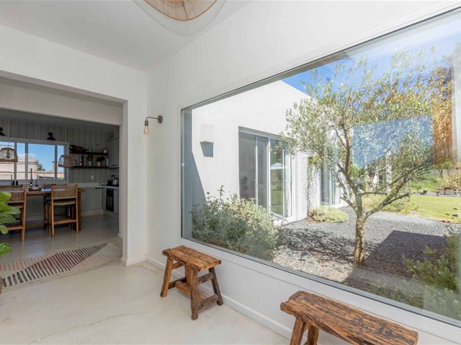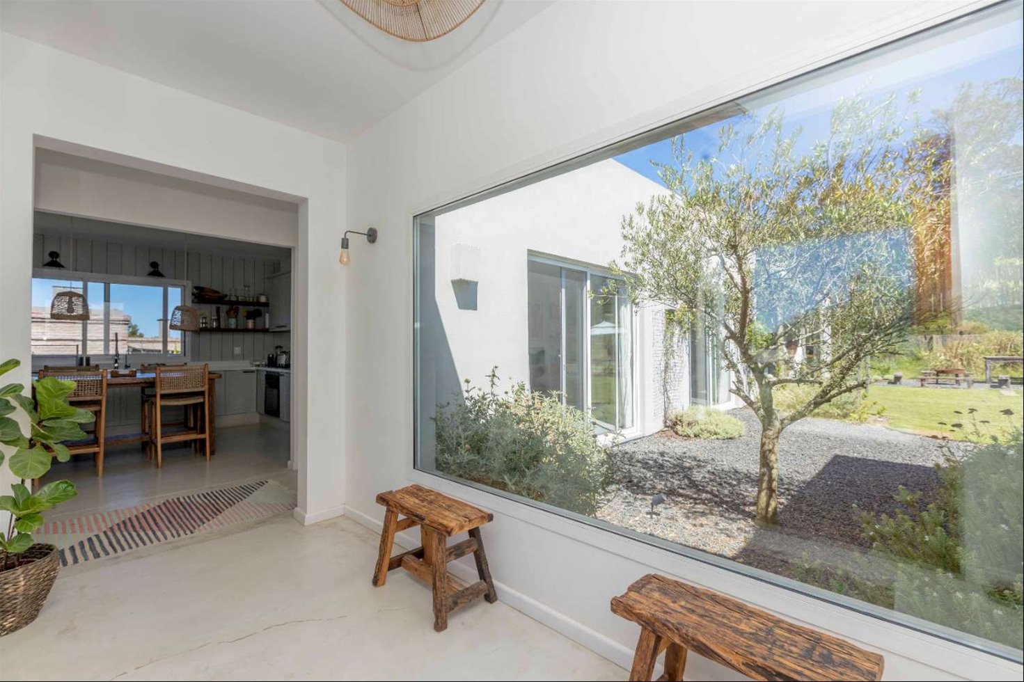 Moderna casa de una planta, estilo mediterráneo, construida en 2022. Ubicada en esquina sobre terreno de 1.061 m² con orientación noroeste y excelente entorno.