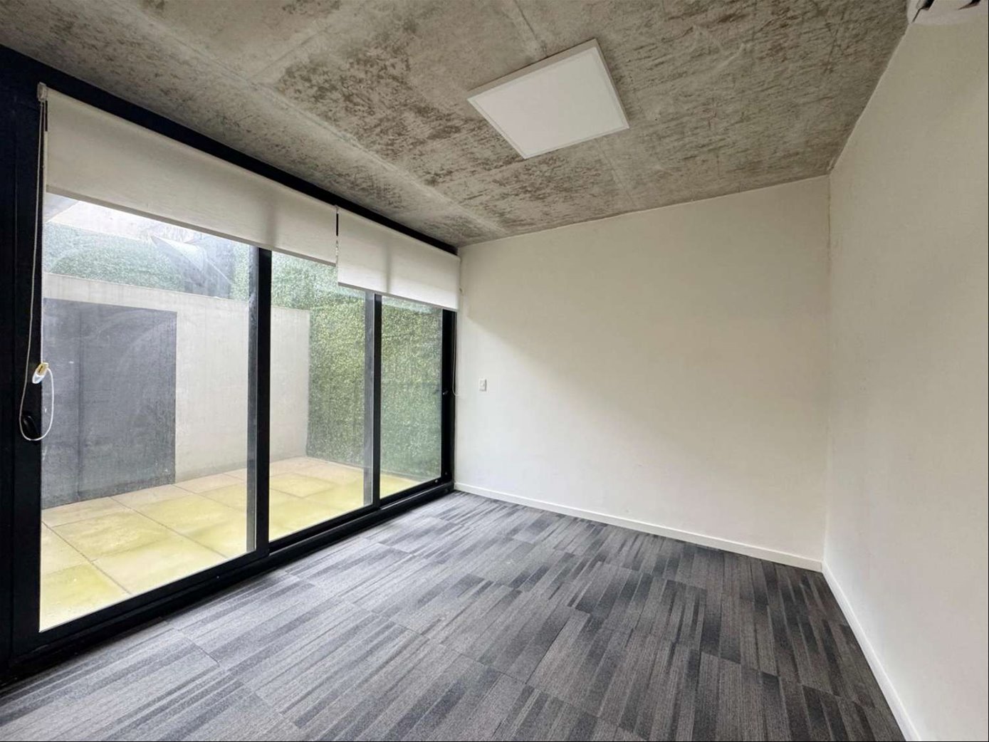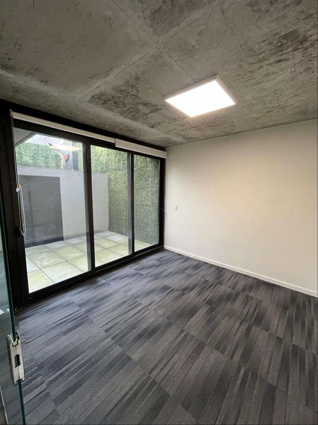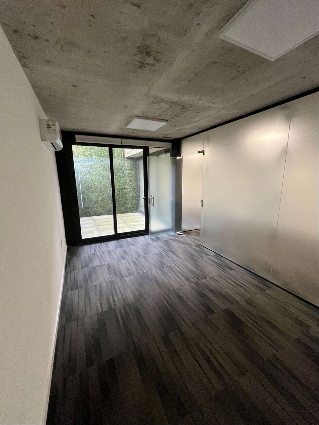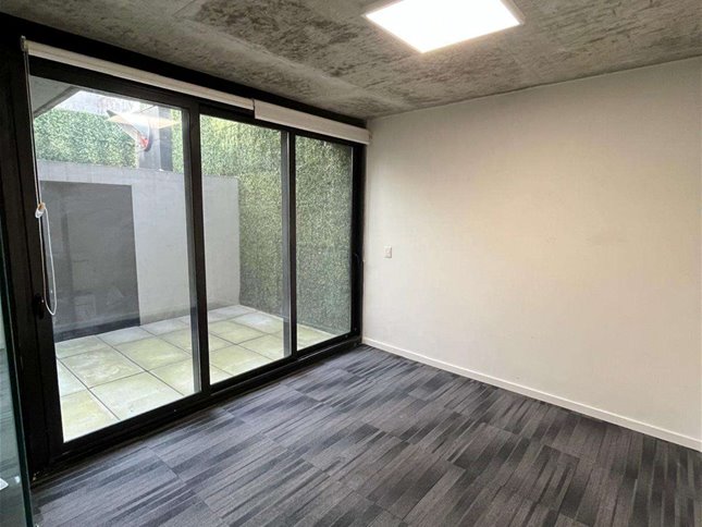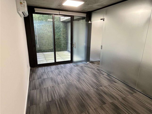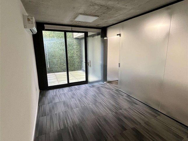 Cuenta con 54 m² interiores bien aprovechados y 9 m² de patio de uso exclusivo. La planta se organiza en dos espacios definidos, permitiendo adaptar cómodamente área de trabajo y privado o sala de reuniones. Dispone además de kitchenette, baño completo y garaje para un vehículo.