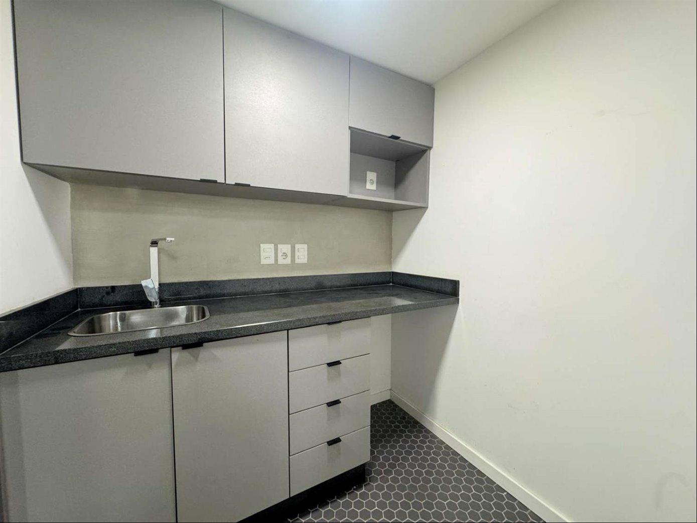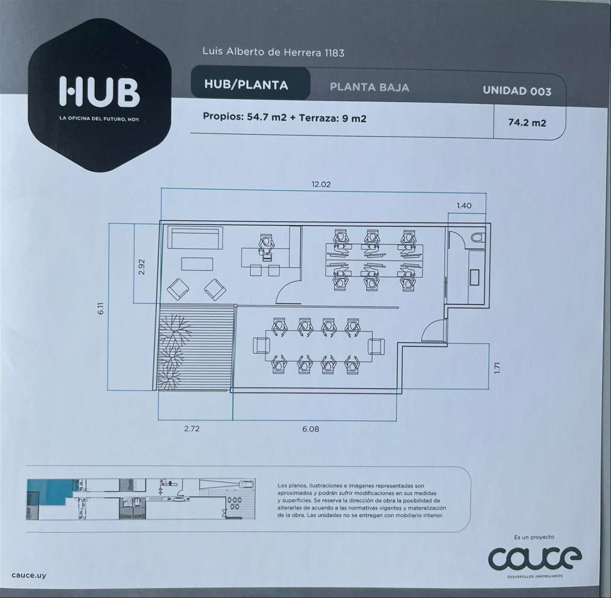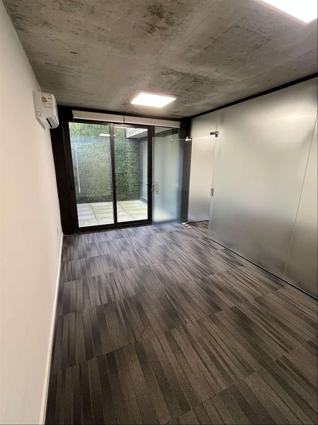 Cuenta con 54 m² interiores bien aprovechados y 9 m² de patio de uso exclusivo. La planta se organiza en dos espacios definidos, permitiendo adaptar cómodamente área de trabajo y privado o sala de reuniones. Dispone además de kitchenette, baño completo y garaje para un vehículo.