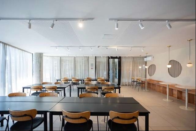 Situado en una torre con acceso digital, cuenta con gimnasio, dos barbacoas equipadas, huerta orgánica, y rincones de lectura y estudio.