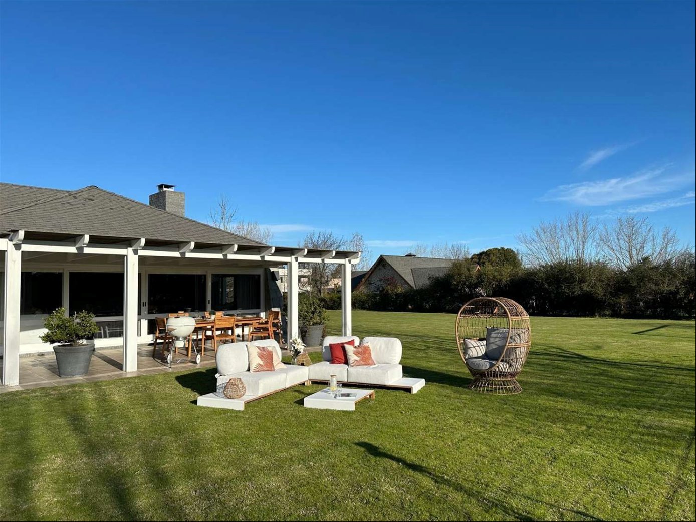 Casa desarrollada íntegramente en una planta, ubicada en un entorno natural y seguro, sobre tres lotes que totalizan 3.248 m² y con excelente orientación norte.