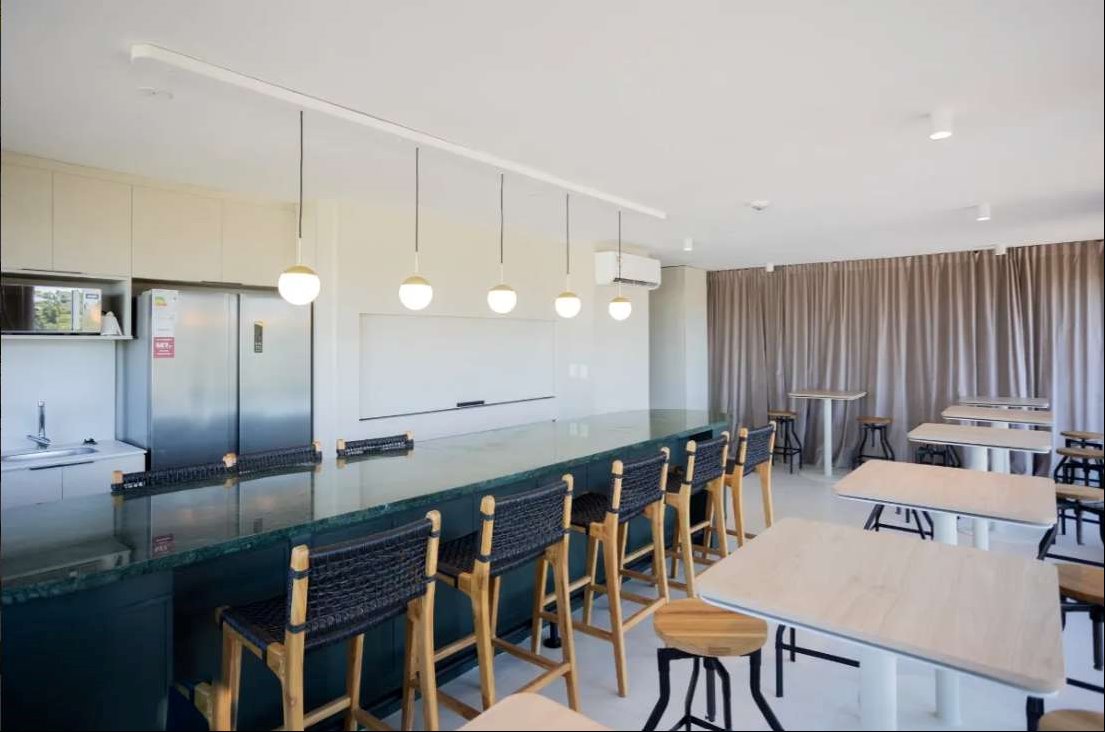 El edificio cuenta con portería, control de acceso y circuito cerrado de cámaras de seguridad. Dentro de los amenities se encuentran barbacoas, bar, espacios multifuncionales, gimnasio, sauna, sector de juegos infantiles y piscina. Se admiten mascotas.