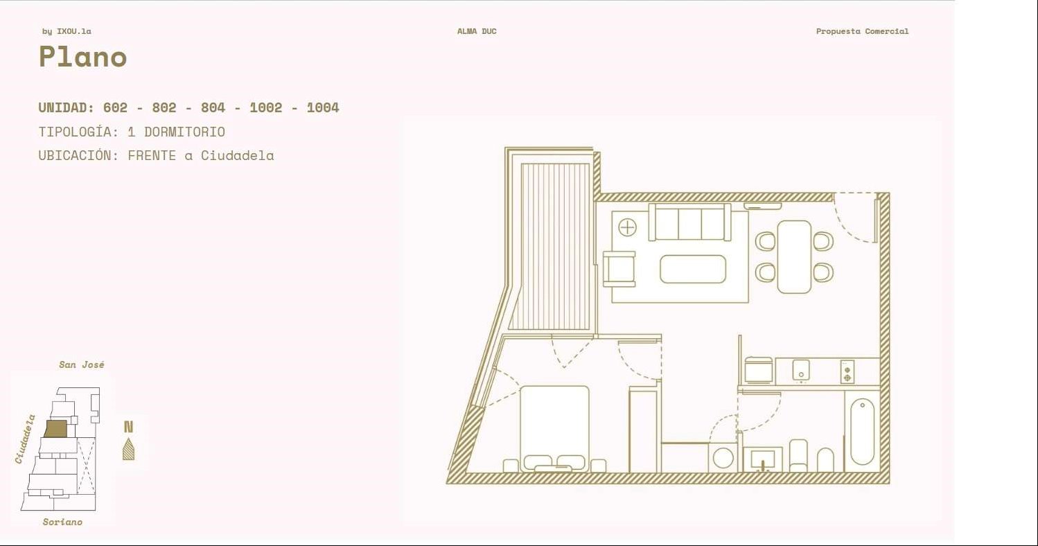 Ubicado sobre Ciudadela entre San José y Soriano, a pasos del Teatro Solís y la sede de CAF, se alquila moderno apartamento de 1 dormitorio.