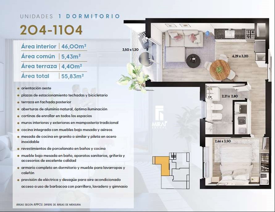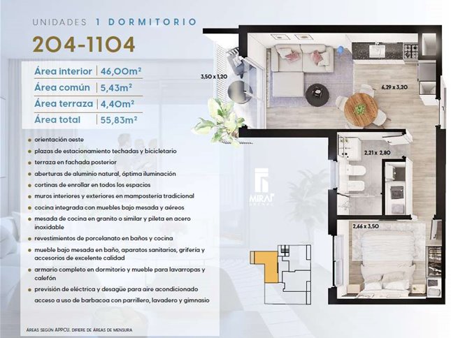 * Las superficies de los apartamentos incluyen muros divisorios hasta su eje, ductos, terrazas, balcones, prorrateo de área común, circulación vertical exclusivamente de planta.