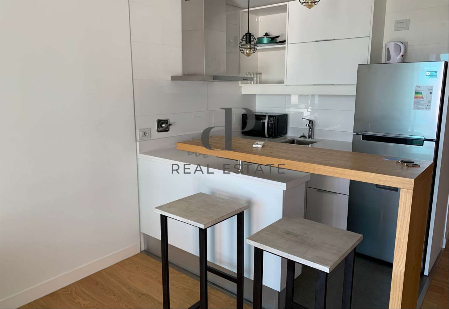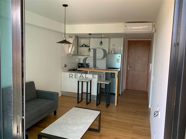 Living comedor muy luminoso, con salida a una espectacular terraza de 13 m2. Cocina integrada con desayunador y equipada con campana, anafe y horno eléctrico. Un dormitorio con placard. Baño completo.