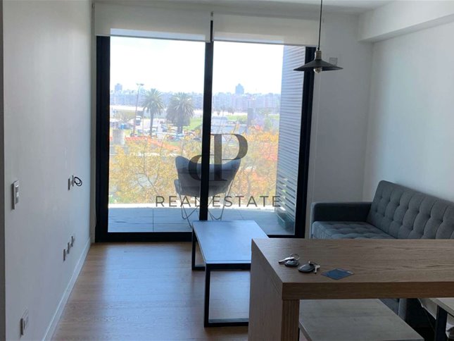 Apartamento en alquiler de 1 dormitorio en Forum, edificio de diseño en Puerto del Buceo, frente al mar.