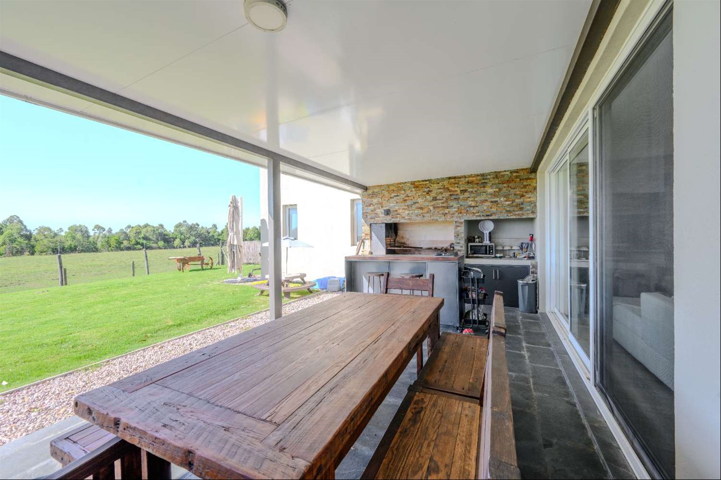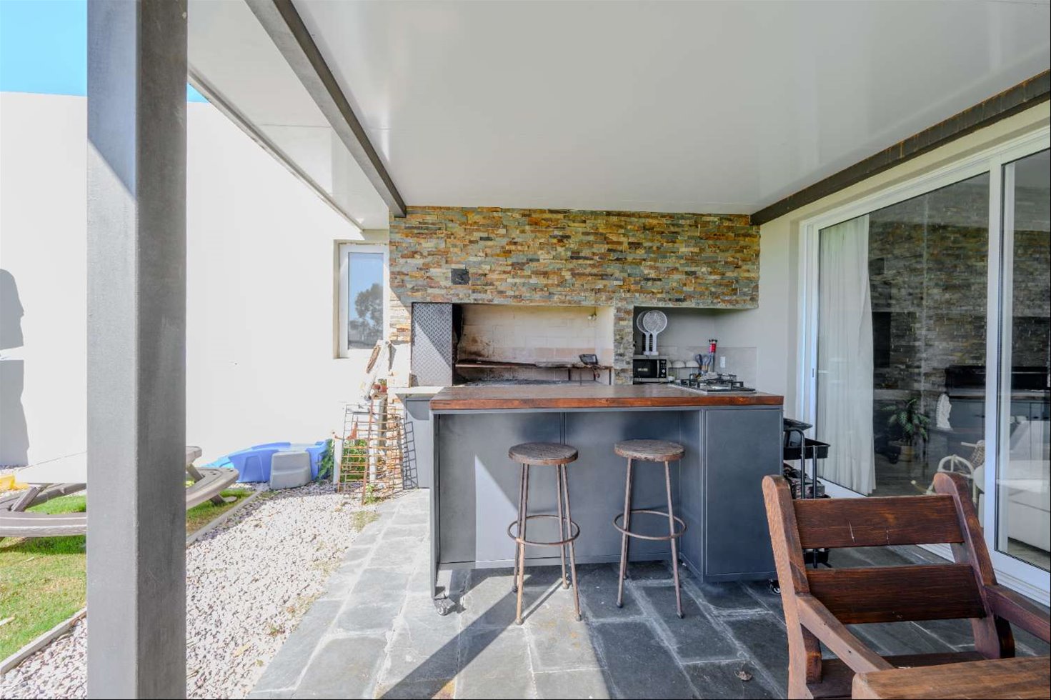 -Exterior: Gran terreno de 1.090 m² con parrillero techado y jardín.