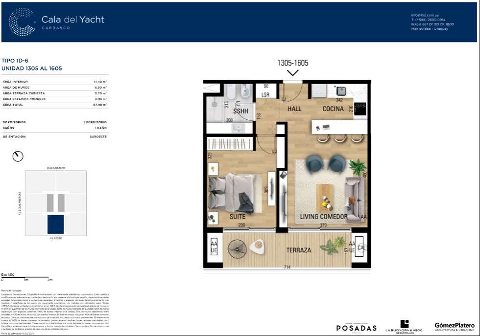 * Las superficies de los apartamentos incluyen muros divisorios hasta su eje, ductos, terrazas, balcones, prorrateo de área común, circulación vertical exclusivamente de planta.