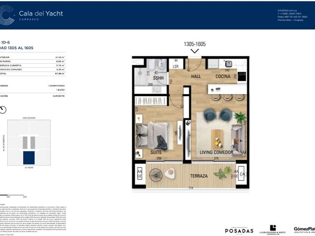 Apartamentos de 1 dormitorio con terrazas, diseño moderno y muy buena luminosidad. Se entregan con horno, anafe, campana, losa radiante eléctrica y previsión para aire acondicionado.